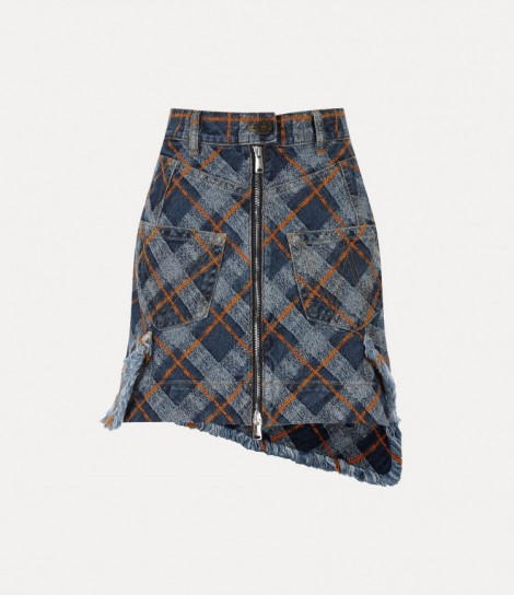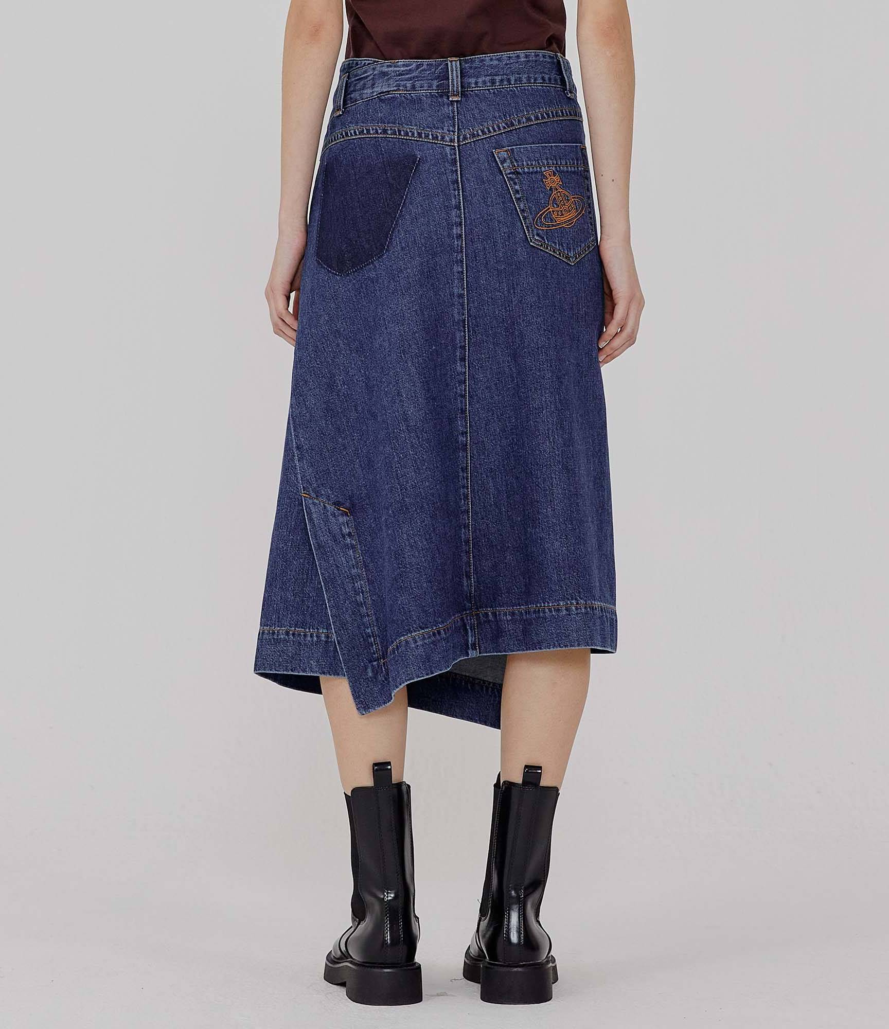 고급 순면으로 제작된 언이븐 헴 에이라인 데님 스커트