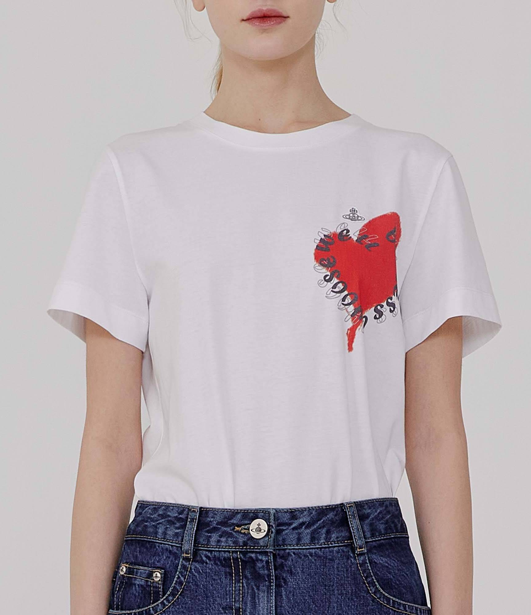 고급 순면으로 제작된 하트 프린트 티셔츠