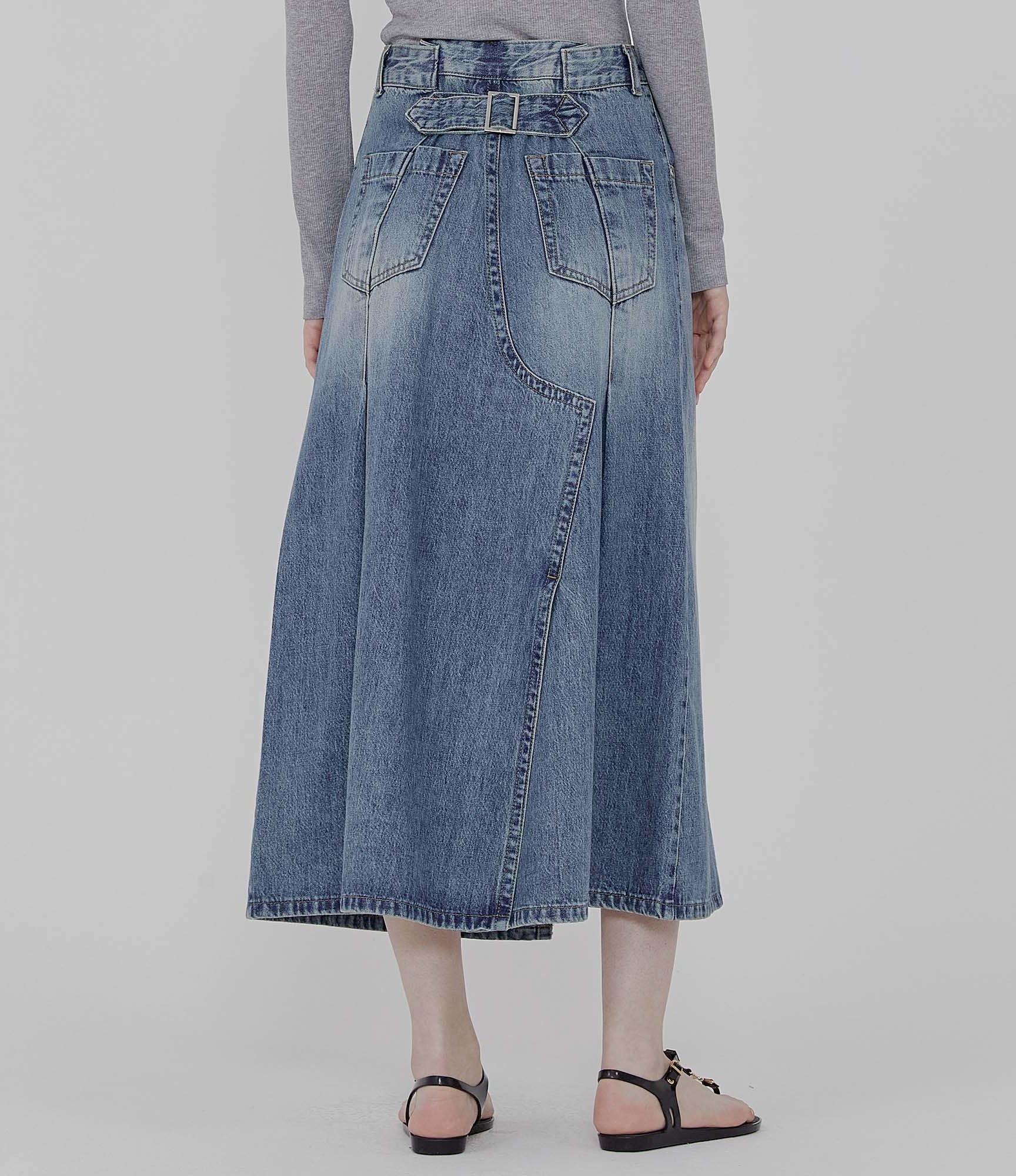 프론트 컷 아웃 데님 스커트