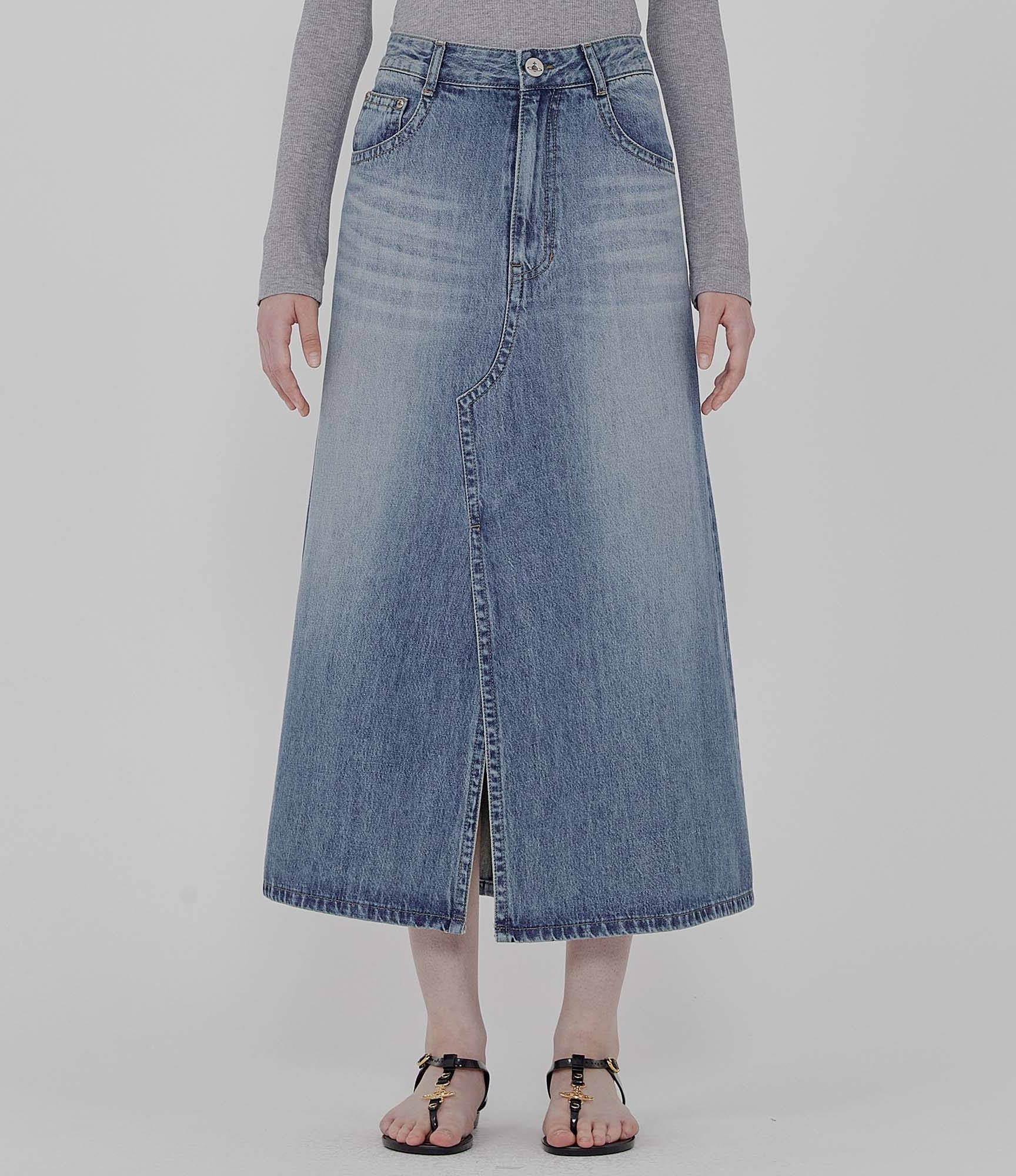 고급 순면으로 제작된 프론트 컷 아웃 데님 스커트