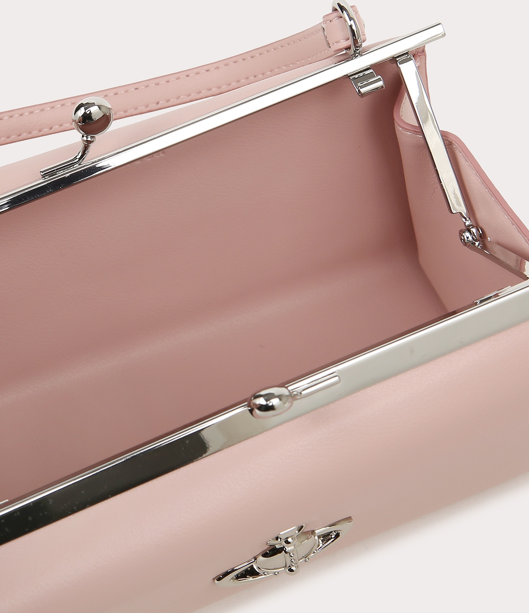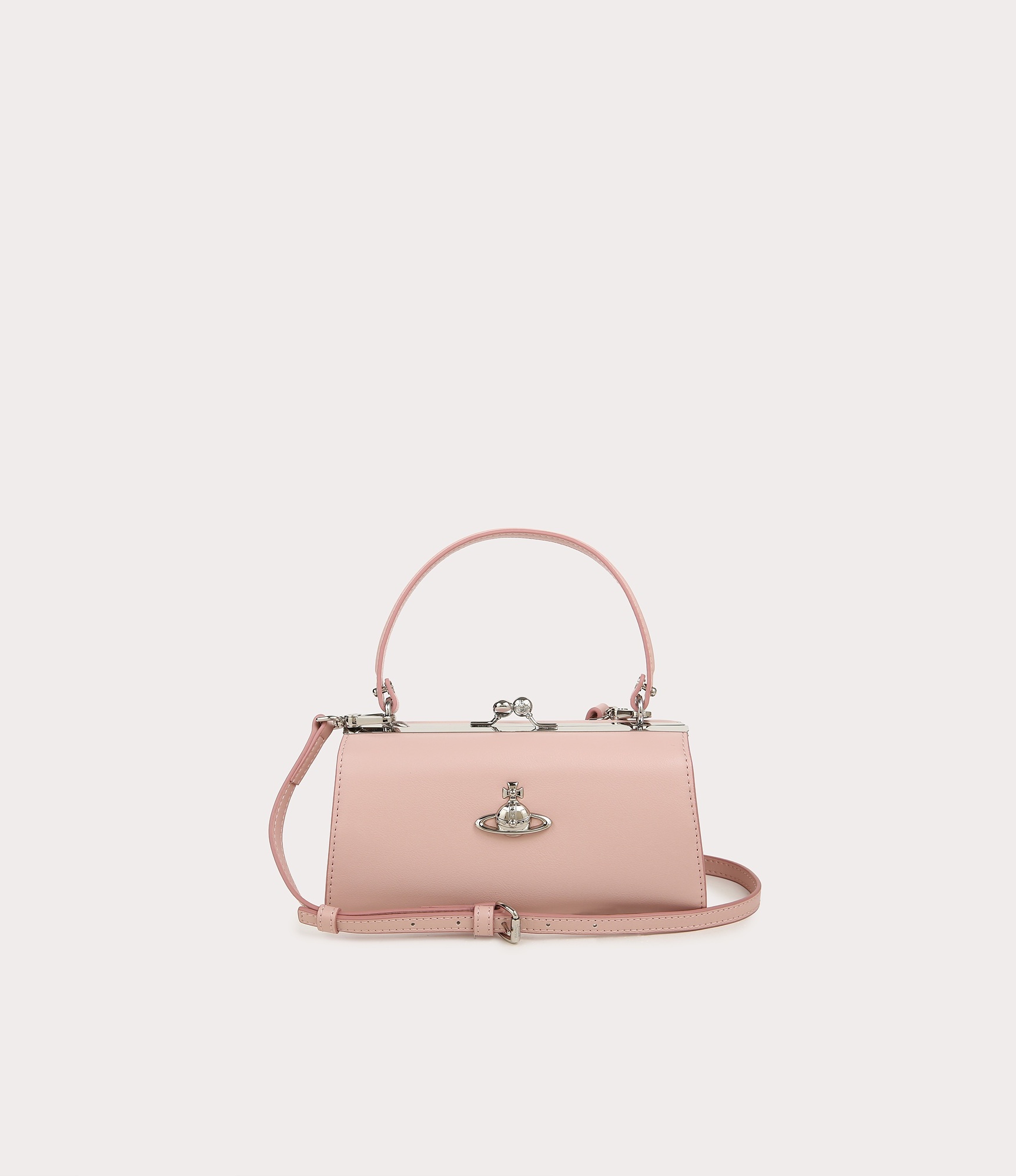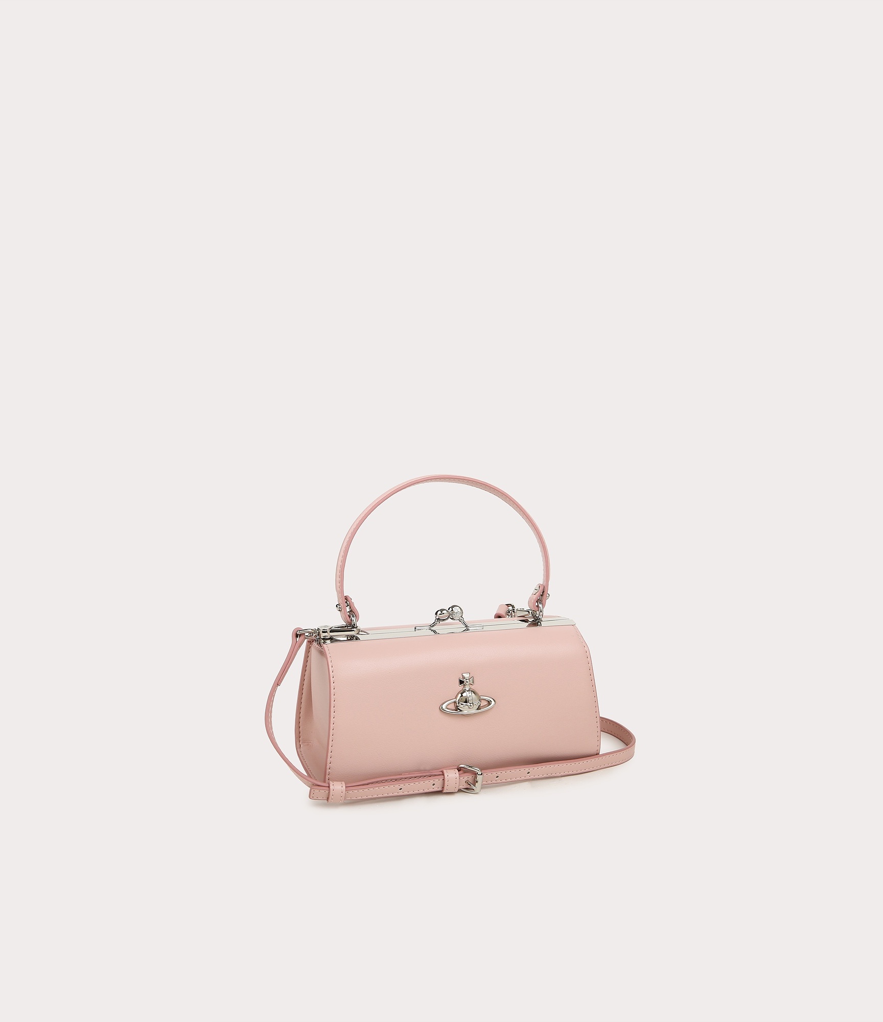 비건 레더로 제작된 돌 프레임 숄더백