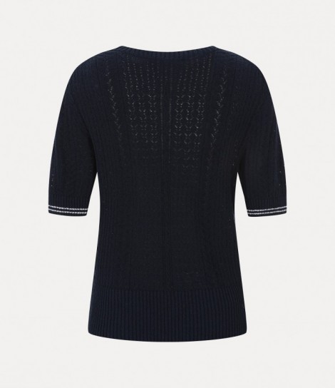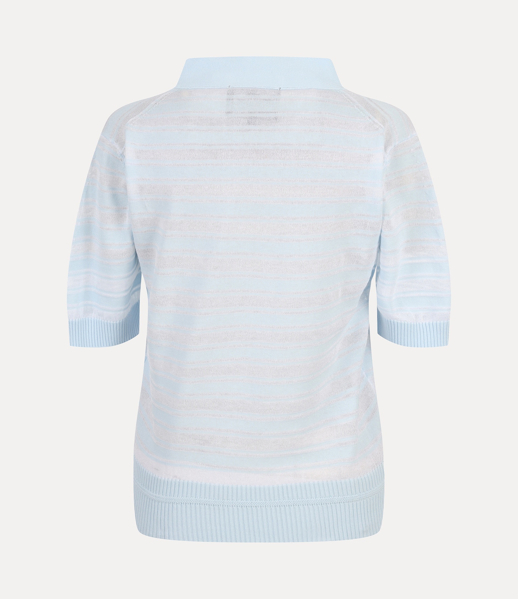 고급 순면으로 제작된 타이 넥 스트라이프 탑 니트