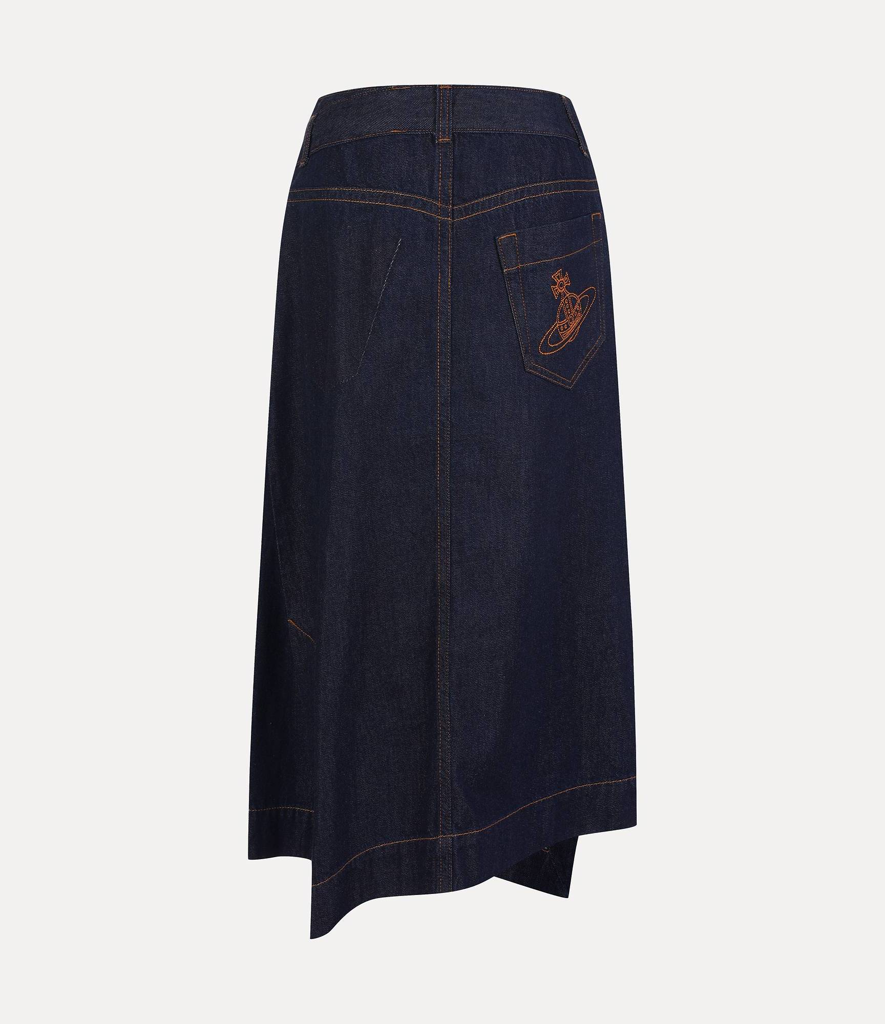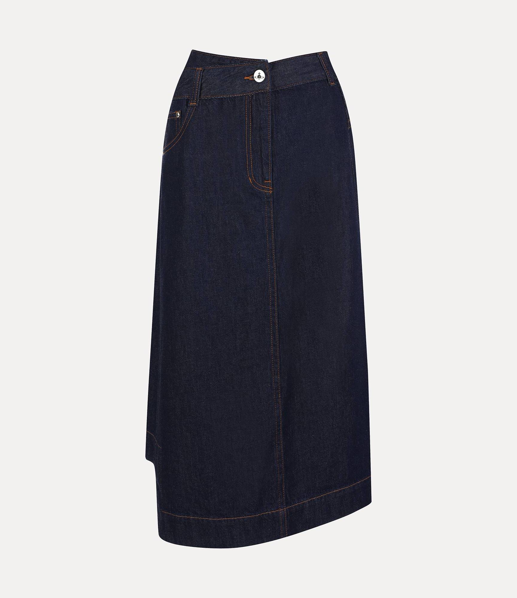고급 순면으로 제작된 언이븐 헴 에이라인 데님 스커트